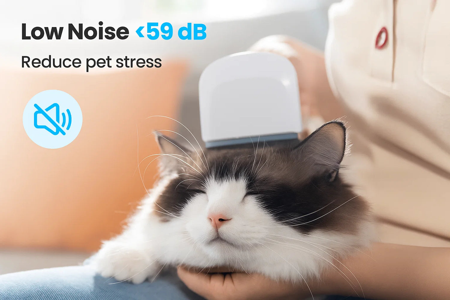 We know pets are sensitive to noises, especially cats. Given that, we have developed a proprietary noise suppression technology - SilentGroom - to reduce the noise to a level both dogs and cats alike are comfortable with!